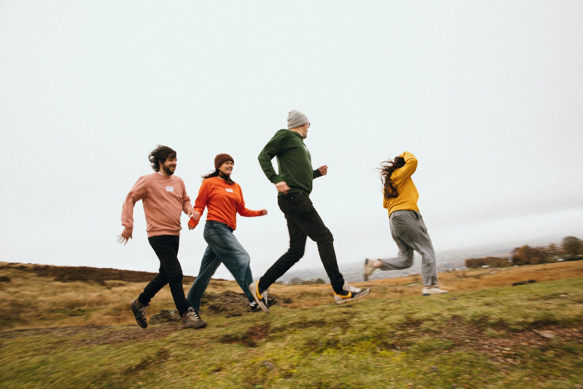 For the first time, we’ve got some colour for the sweatshirts, all featuring central embroidered logo. Available in forest green, dusky pink, orange and yellow