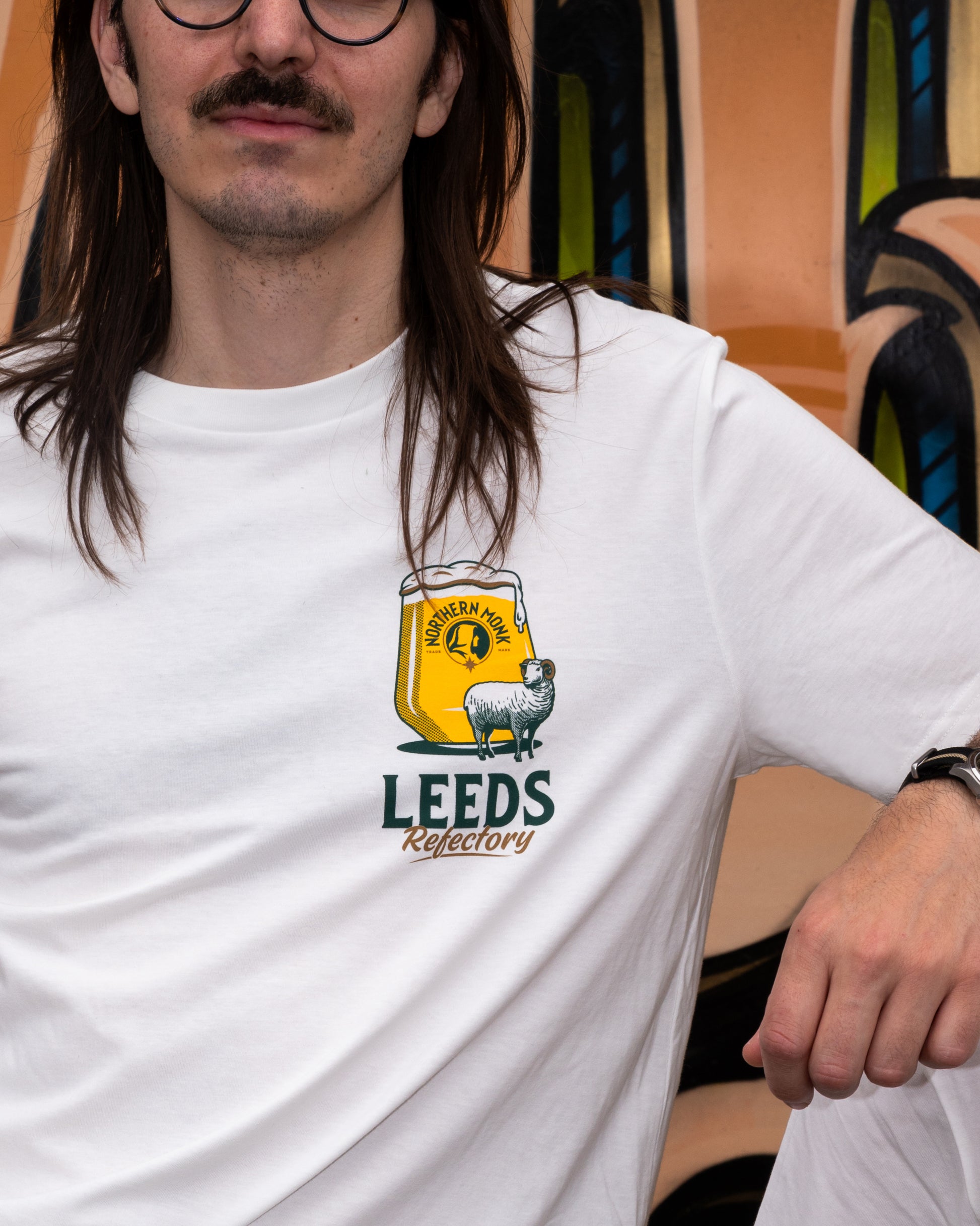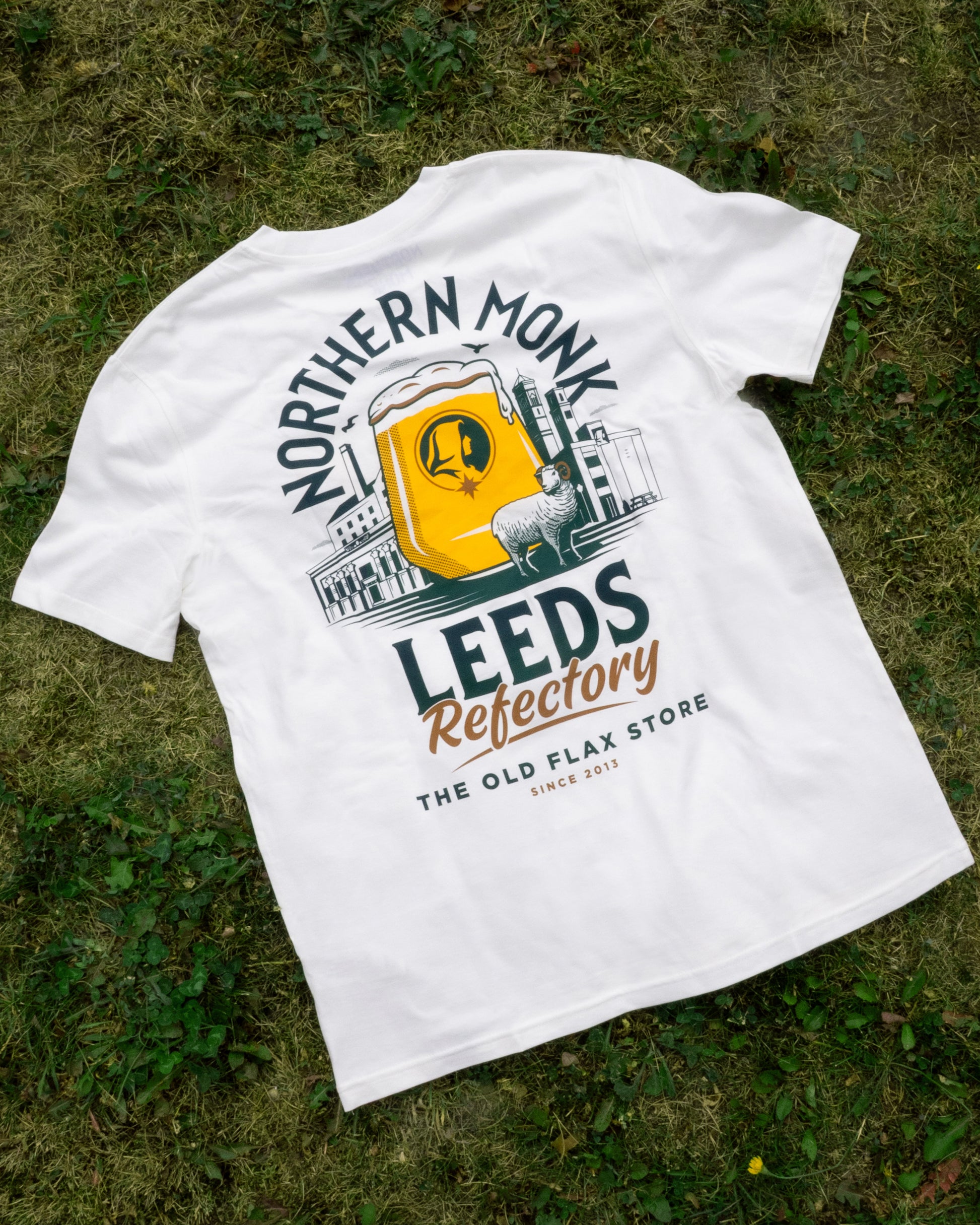 White tee featuring our Leeds Refectory branding